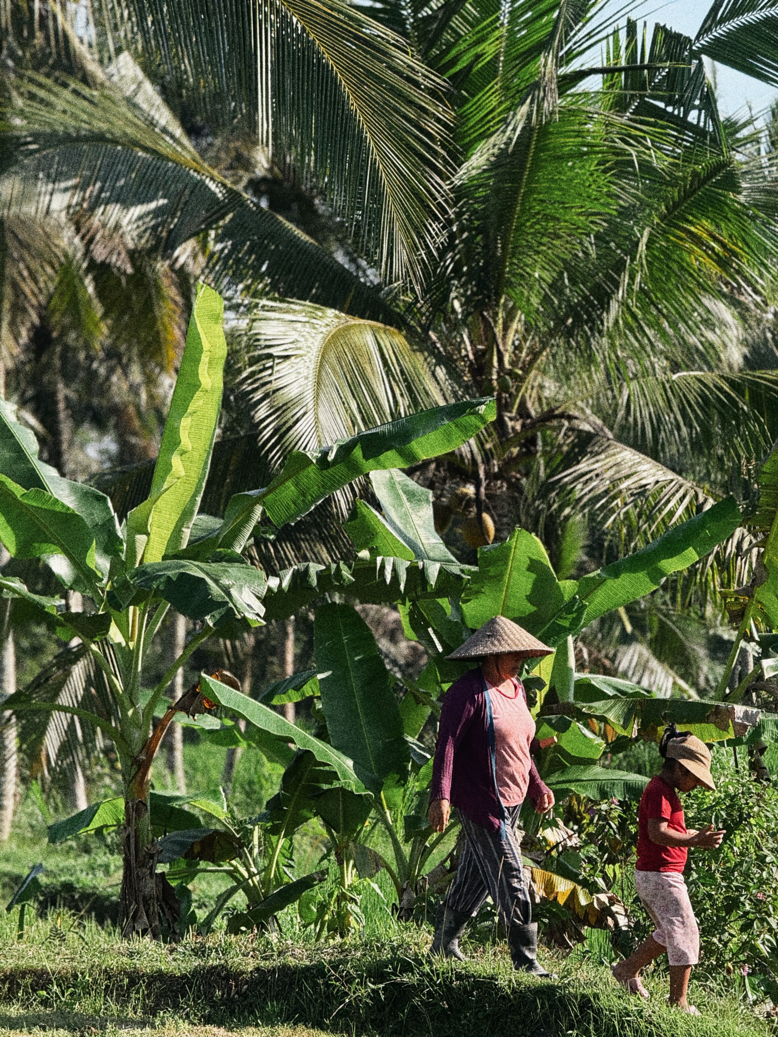 Na Bali praca nie jest czymś, co trzeba „przetrwać”, by zacząć żyć po godzinach. Jest naturalną częścią dnia, rytmu i relacji międzyludzkich. Podczas naszych wizyt widzieliśmy ludzi zaczynających dzień wcześnie, często jeszcze przed pełnym wschodem słońca, pracujących w słońcu, w wilgoci, wśród zieleni. To praca fizyczna, wymagająca siły, koncentracji i doświadczenia, ale pozbawiona nerwowości i presji czasu, które tak dobrze znamy z Europy.