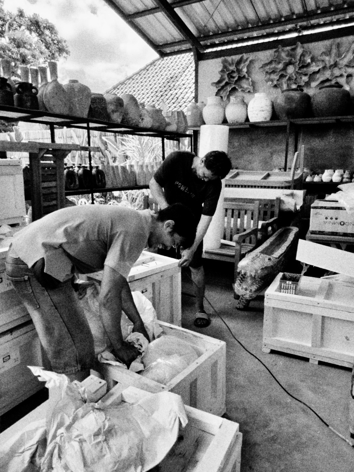 To ostatni etap pracy na Bali. Ostatni moment, w którym obiekt jest jeszcze „u siebie”. Dlatego pakowanie odbywa się spokojnie, bez pośpiechu. Bo rzemiosło nie kończy się w piecu ani w pracowni. Kończy się dopiero wtedy, gdy obiekt bezpiecznie dotrze do nowej przestrzeni.