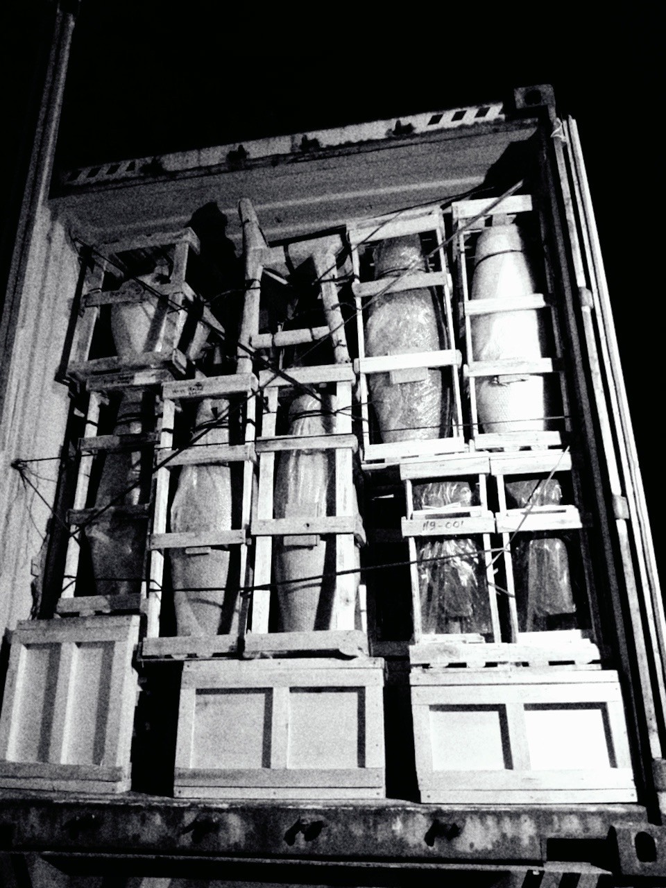 Każda skrzynia została zaprojektowana pod konkretny obiekt. Drewno jest surowe, ale precyzyjne. Pasy trzymają ciężar. Nic nie dotyka niczego przypadkiem. Te obiekty są ciężkie, kruche i niepowtarzalne jednocześnie. Właśnie dlatego wymagają fizycznej pracy i pełnej kontroli na każdym etapie załadunku.