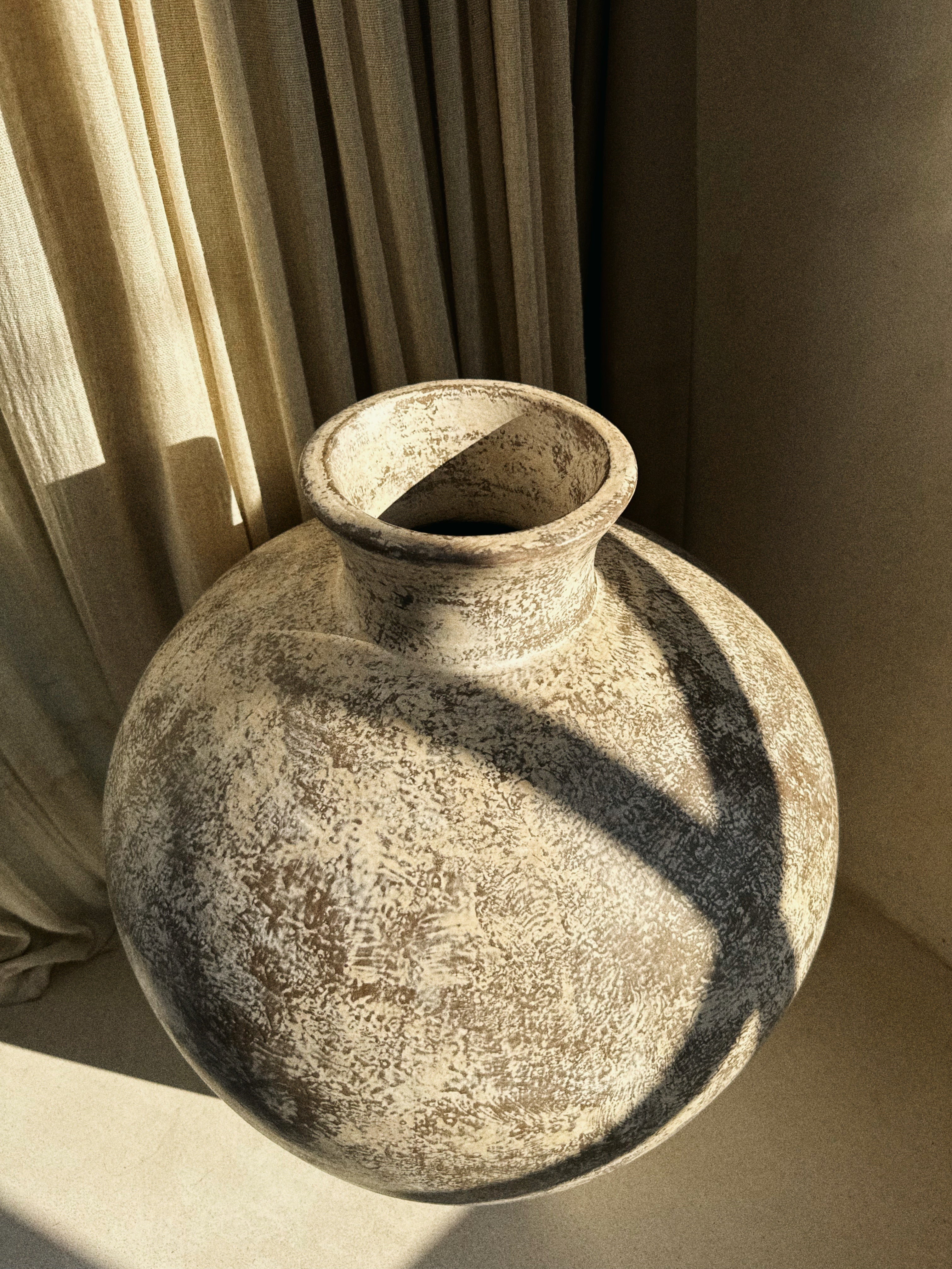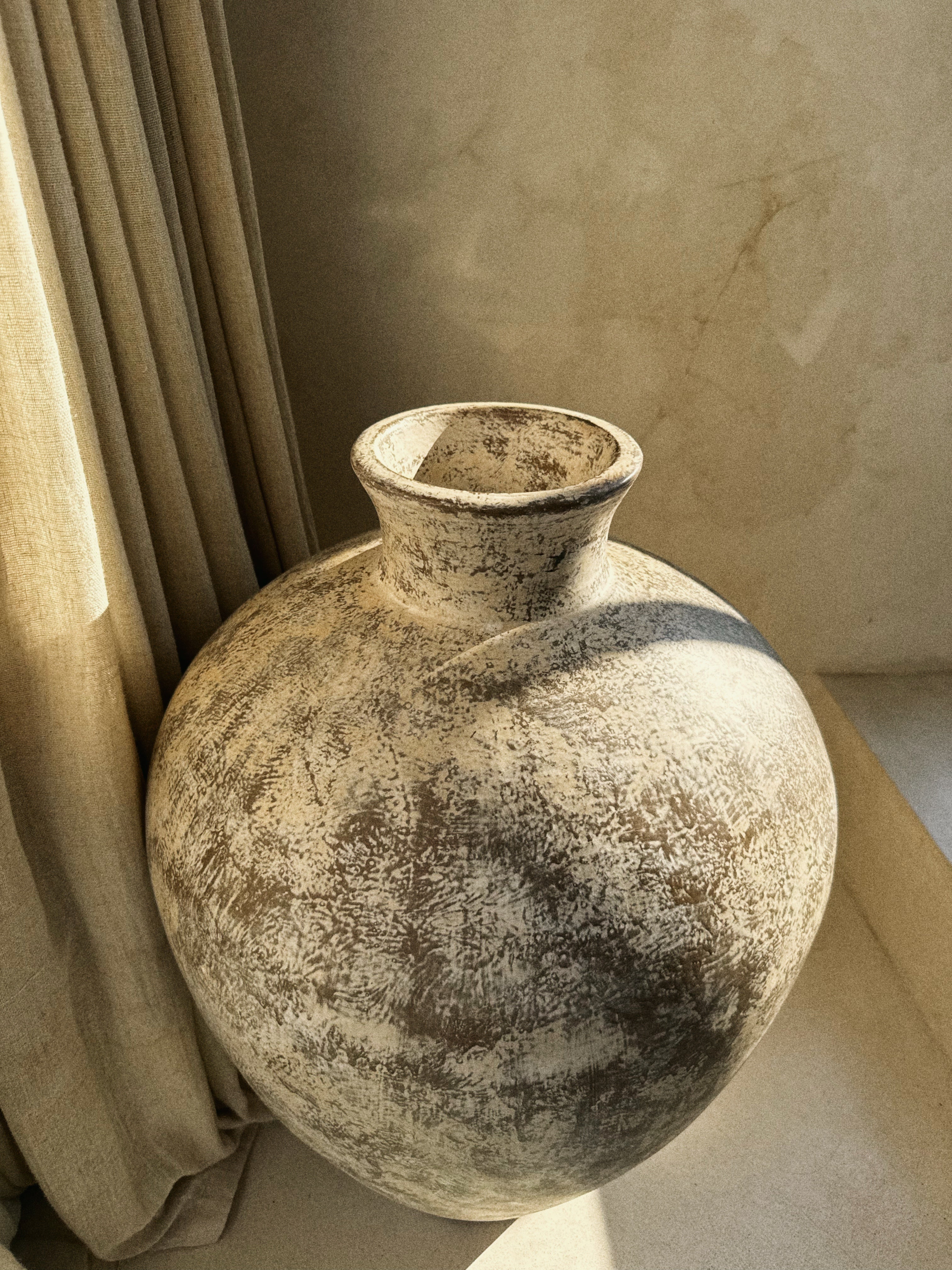 Ręcznie wykonana waza z terakoty o masywnej, spokojnej formie i naturalnej, matowej fakturze.