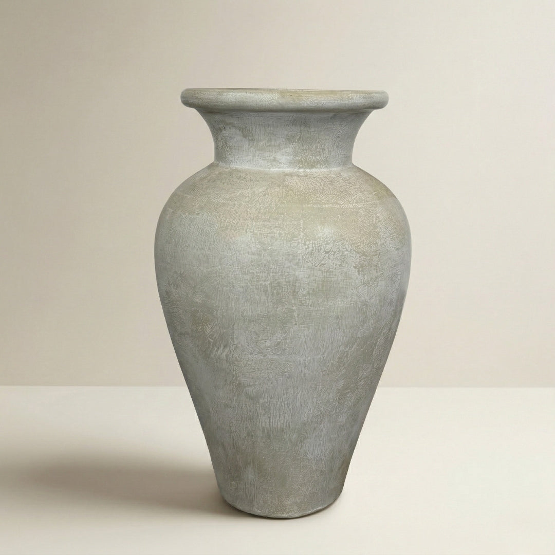 Rzeźbiarska waza o wyważonej, eleganckiej formie i miękkim, mineralnym wykończeniu w odcieniu Stone Haze.