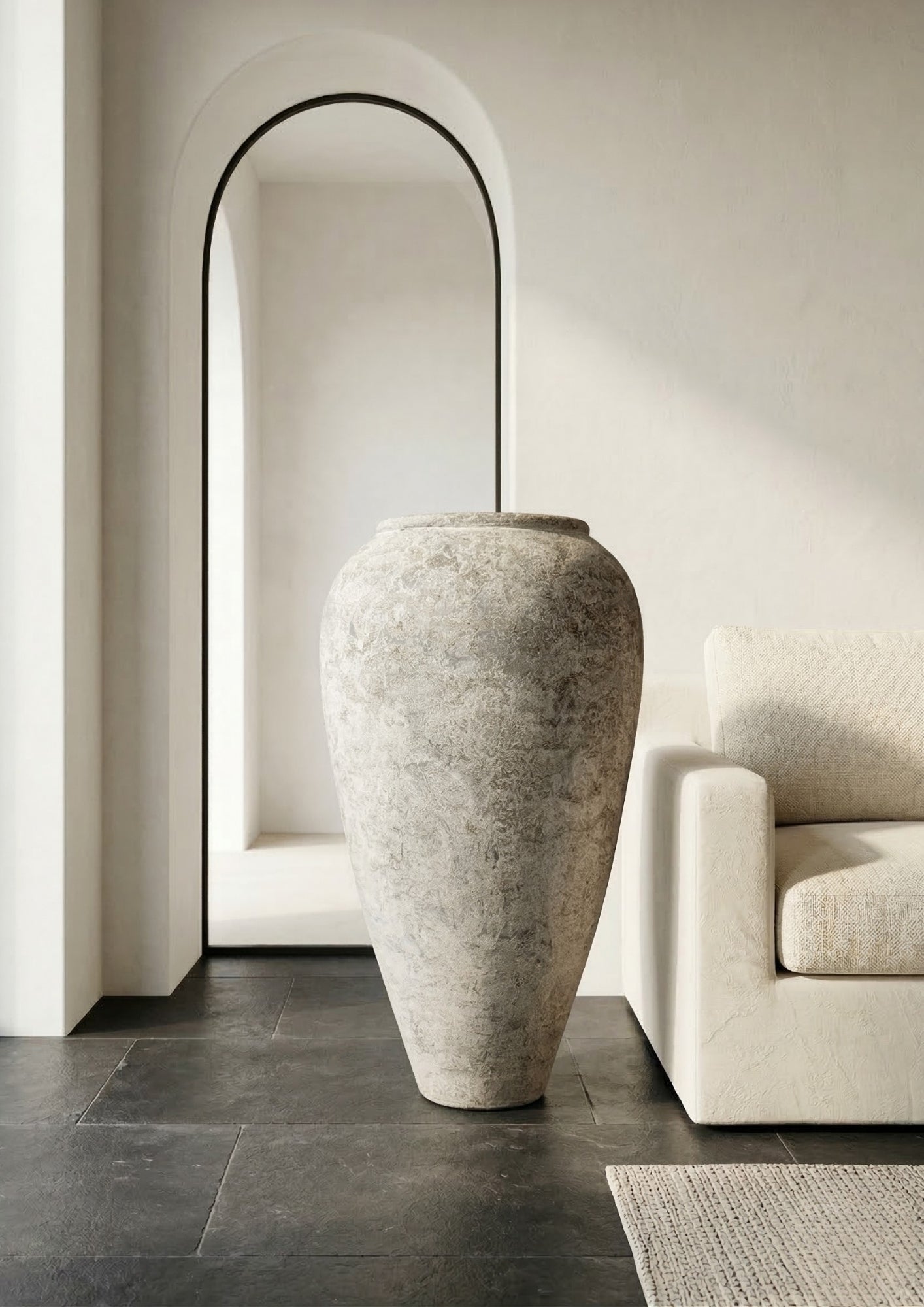 Rzeźbiarska waza o wyważonej, monumentalnej formie i subtelnym wykończeniu w odcieniu Ivory Stone.