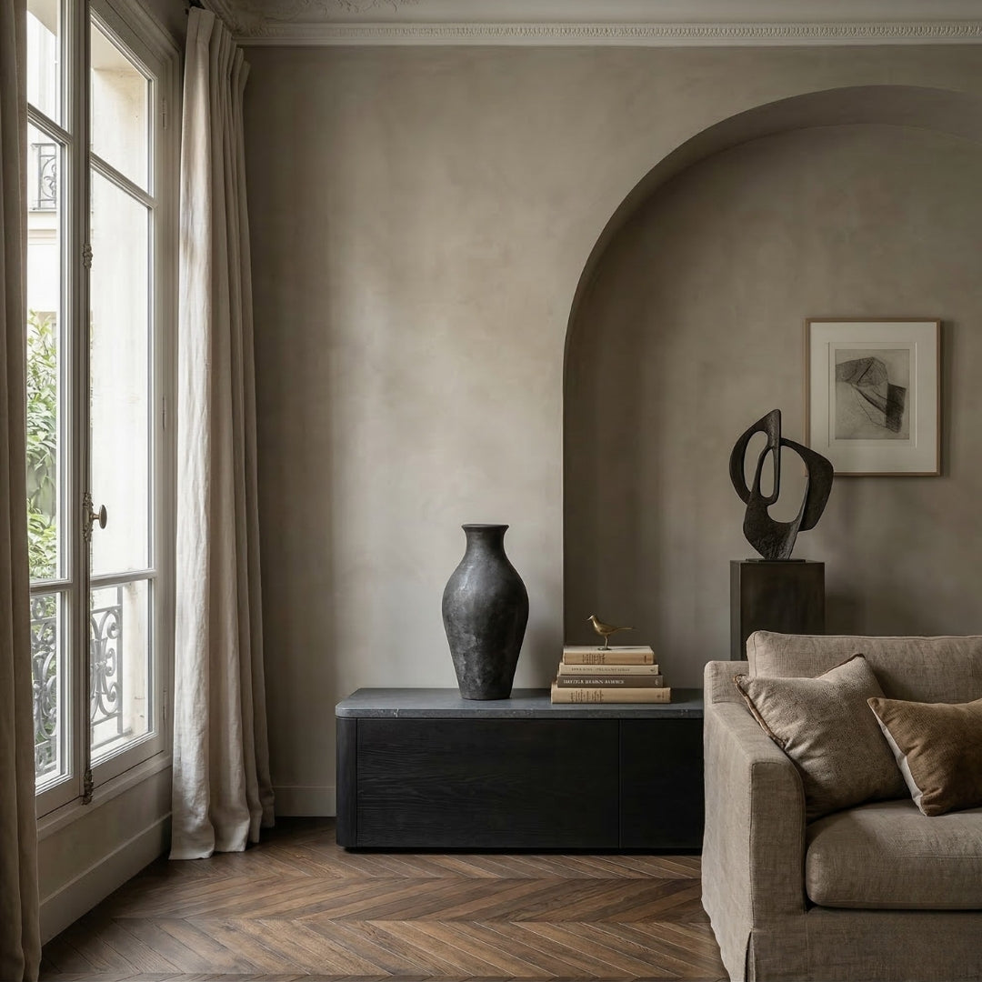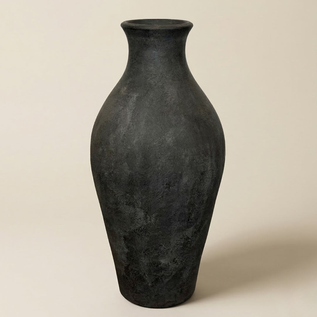 Smukła, rzeźbiarska waza o eleganckiej sylwetce i głębokim wykończeniu w odcieniu Black Patina.