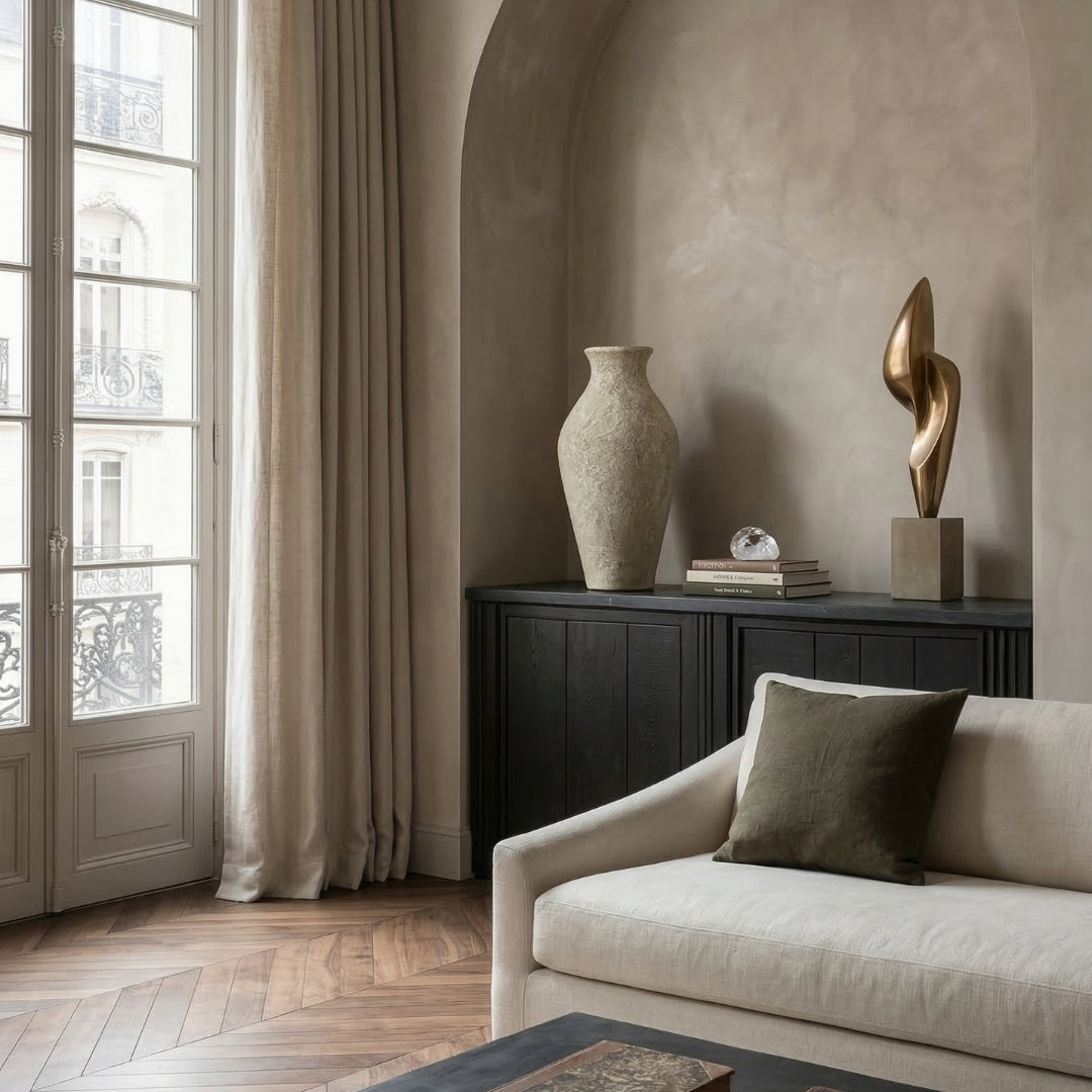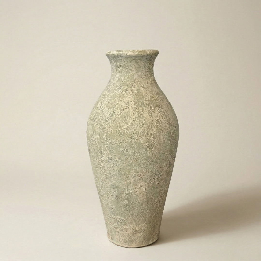 Smukła, rzeźbiarska waza o eleganckiej sylwetce i subtelnym wykończeniu w odcieniu Celadon Veil.