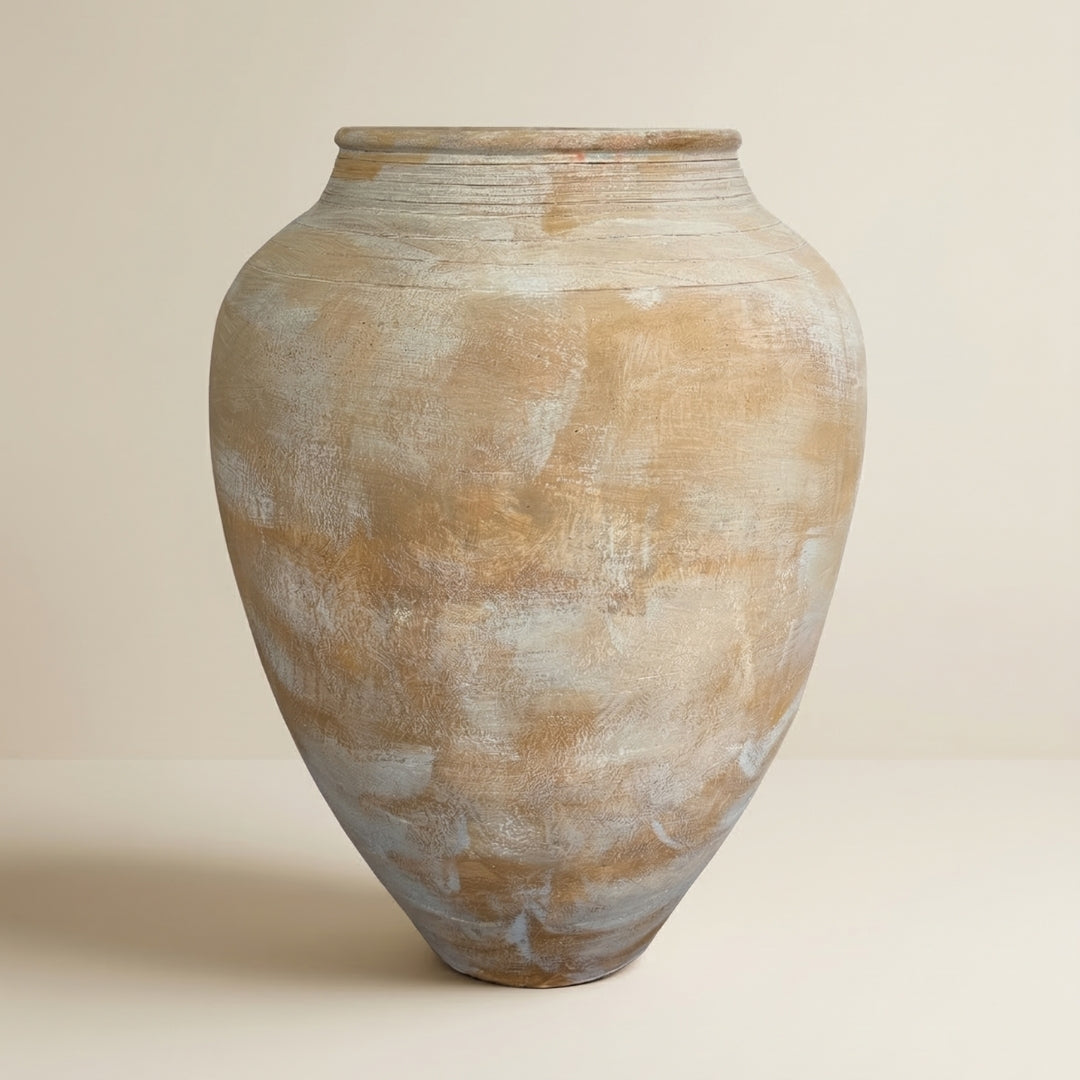 Monumentalna waza o pełnej, rzeźbiarskiej formie i ciepłym wykończeniu w odcieniu Desert Veil, które wnosi do wnętrza naturalną lekkość i szlachetny charakter.