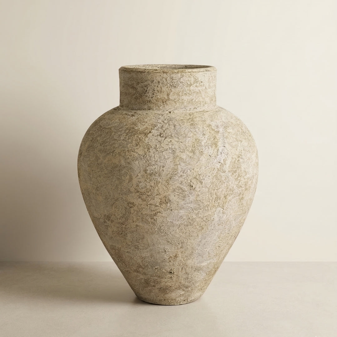 Rzeźbiarska waza o harmonijnej, organicznej sylwetce i wyrazistym wykończeniu w odcieniu Moon Plaster.